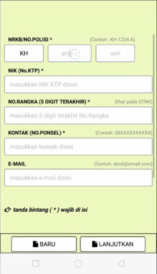 - Isi data yang diminta berupa nopol, no rangka, no hp dan NIK